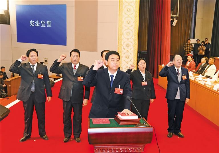 根據(jù)《全國人民代表大會(huì)常務(wù)委員會(huì)關(guān)于實(shí)行憲法宣誓制度的決定》及《西藏自治區(qū)實(shí)施憲法宣誓制度辦法》,7日上午,自治區(qū)十一屆人大五次會(huì)議舉行憲法宣誓儀式。