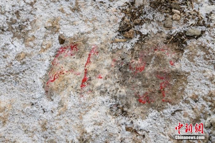 圖為1月19日拍攝的西藏拉薩市堆龍德慶區(qū)德慶鄉(xiāng)邱桑村邱桑溫泉石灰?guī)r上的“古人類手腳印”。中新社記者 貢嘎來(lái)松 攝