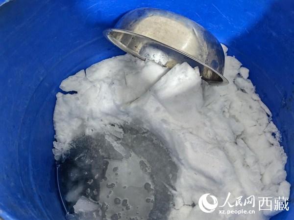 沒有水的日子里,囤雪是常規(guī)操作。“一桶雪得用一天時(shí)間才能化開?;┻€有技巧呢,桶里必須預(yù)留部分水,再放到爐邊才行?!彪m然水管從山下接到了哨所,但冬季氣溫降到零下幾十度,水管結(jié)冰,化雪取水的傳統(tǒng)依然不能丟?!跋匆伦鲲堄玫亩际茄┧?,還是要珍惜?!眻嚎谏谒嚅L文盛高笑著說。