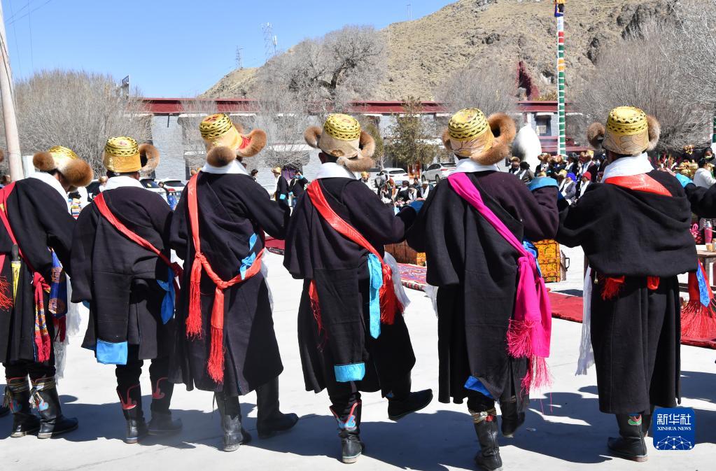 3月3日,西藏山南市貢嘎縣崗堆鎮(zhèn)群眾身著藏裝歡度藏歷水虎新年。新華社記者 覺果 攝