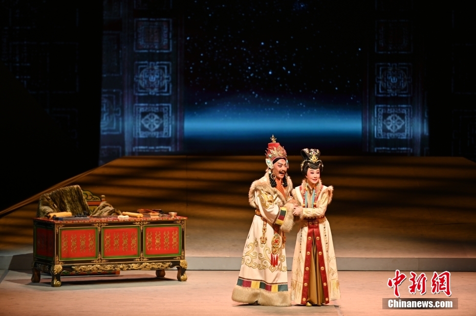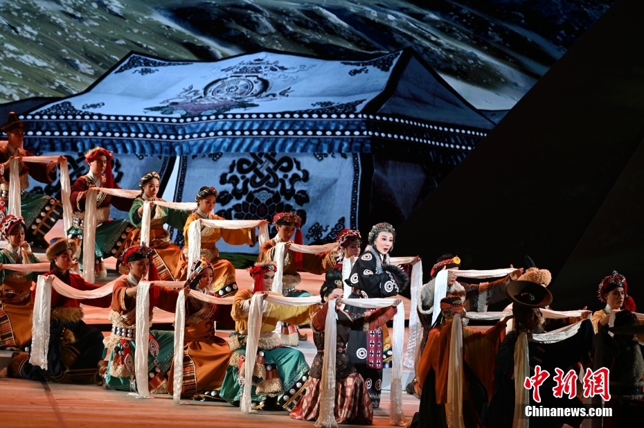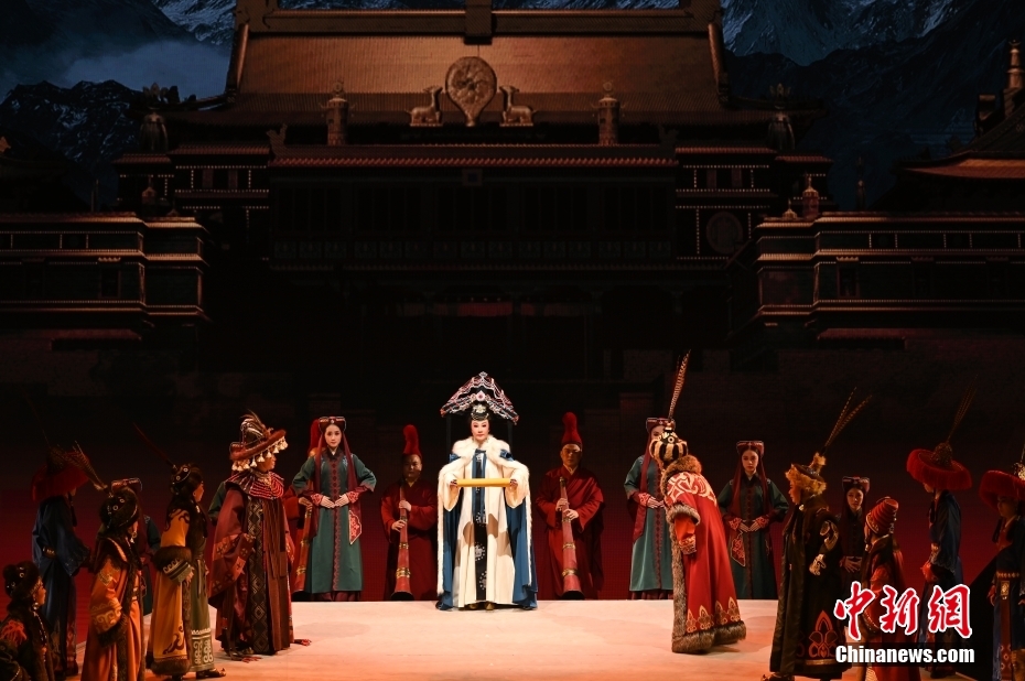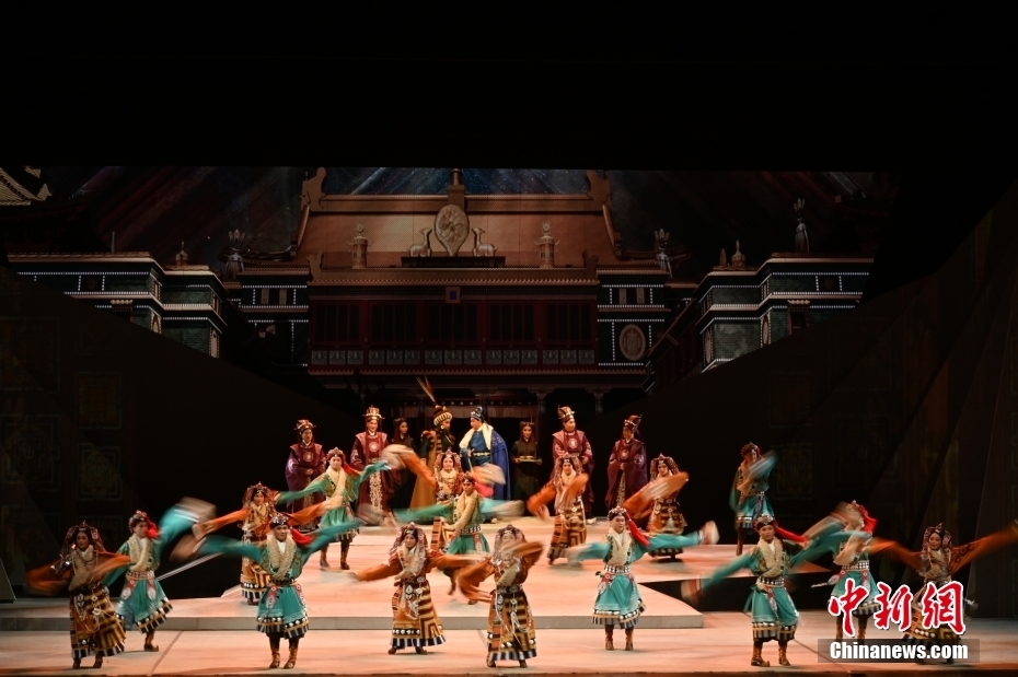 10月11日晚,大型新編歷史粵劇《文成公主》在廣東廣州大劇院首演。該劇以文成公主和親進藏的歷史事件為依據(jù)創(chuàng)作,講述了文成公主堅守吐蕃四十年,促進了吐蕃經(jīng)濟、文化的發(fā)展,加強了漢藏人民的友好關系。 中新社記者 陳楚紅 攝