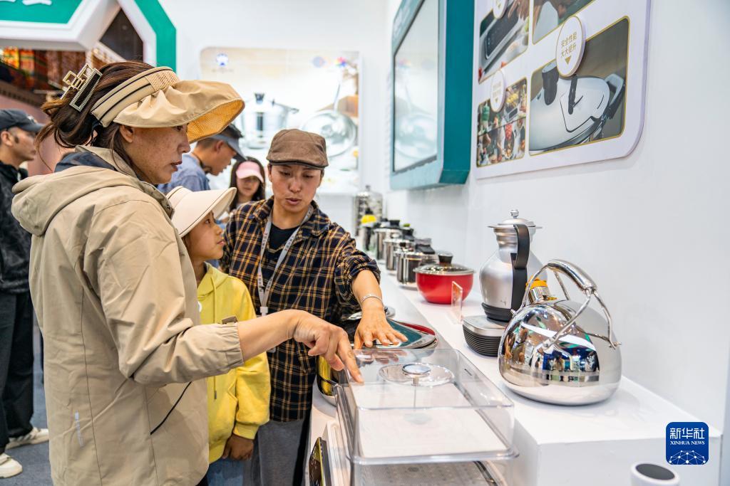 6月17日,工作人員在第五屆藏博會現(xiàn)場為參觀者介紹產(chǎn)品。新華社記者 孫非 攝