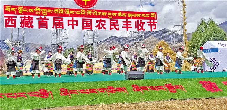 “熱振曲卓”文藝演出隊參加西藏首屆農(nóng)民豐收節(jié)。