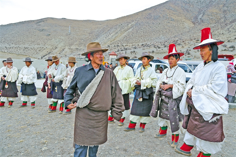 “小時候,我看見大人們在草地上跳‘熱振曲卓’,舞姿太漂亮了。我不想我的后代只能在書本里看到這個舞蹈,希望把它傳承下去?!?6歲的宗巴為了恢復“熱振曲卓”表演,于2015年成立了林周“熱振曲卓”傳播有限公司,致力于該舞蹈的傳承保護。
