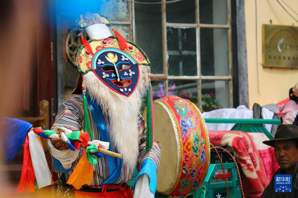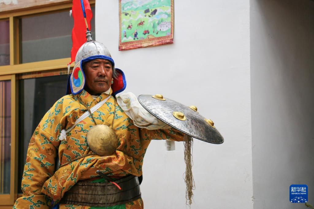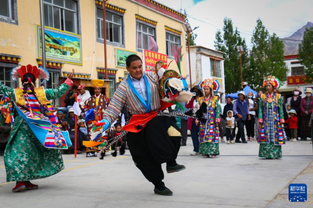 科迦藏戲團(tuán)團(tuán)長達(dá)瓦洛珠正在表演藏戲(8月9日攝)。新華社記者 聶毅 攝