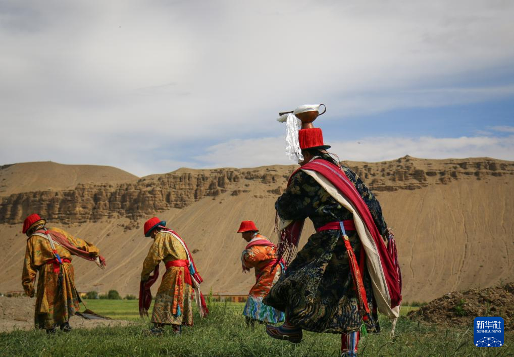 仁貢村村民正在表演敬酒歌“雅爾松吧”(8月11日攝)。新華社記者 曹檳 攝