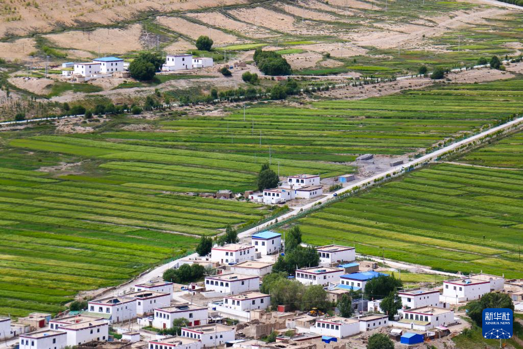 被青稞田點(diǎn)綴的西藏普蘭縣村莊(8月12日攝)。新華社記者 曹檳 攝