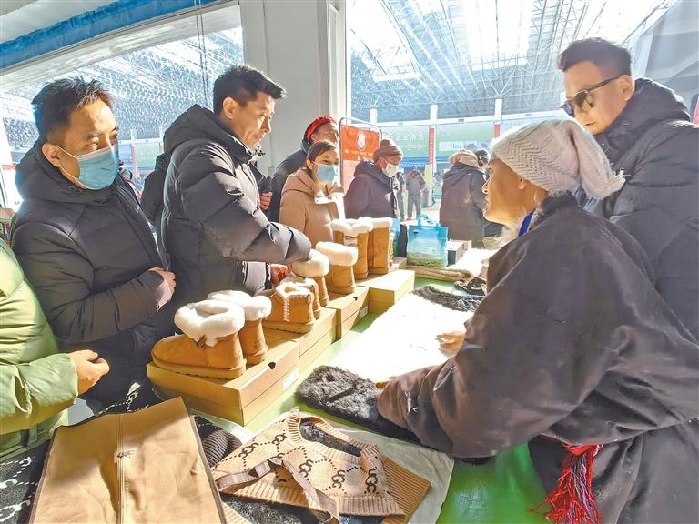 圖為市民購買嘎措羊皮雪地靴。本報(bào)記者 趙書彬 攝