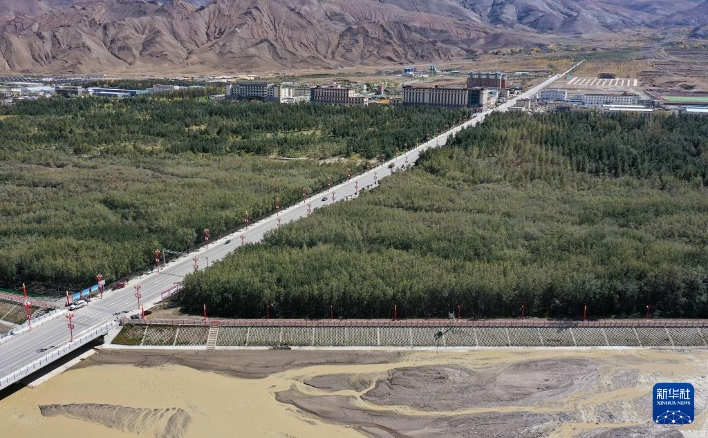 經(jīng)過半個(gè)多世紀(jì)的辛勤栽植,隆子河谷筑起了一道40余公里、面積超50平方千米的“綠色長(zhǎng)城”,2019年被世界紀(jì)錄認(rèn)證機(jī)構(gòu)WRCA認(rèn)證為“世界最大人工種植連片沙棘”。俯瞰這片沙棘林,猶如一條“綠色哈達(dá)”,守護(hù)著這里的碧水藍(lán)天。