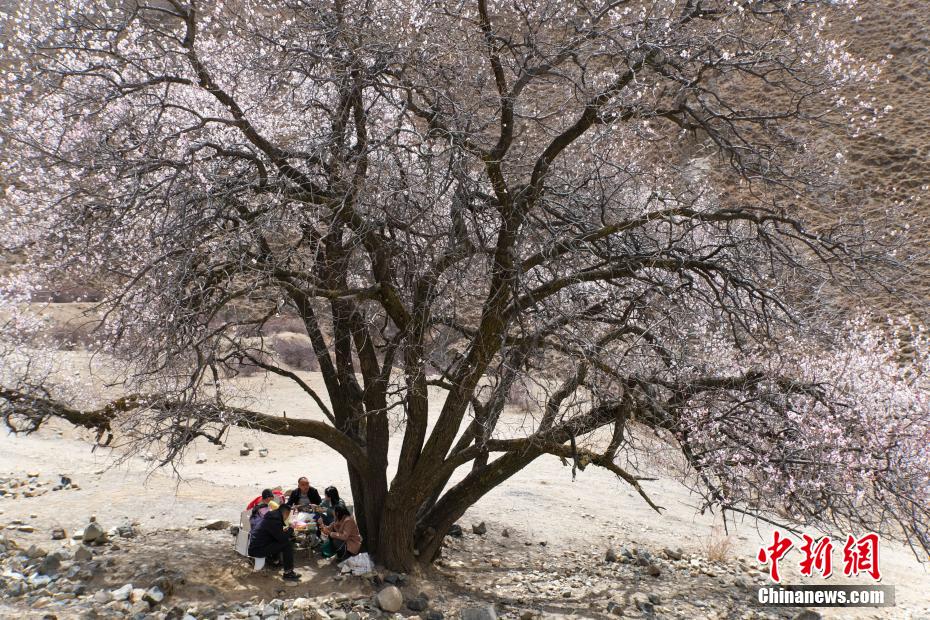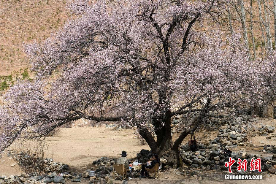3月下旬,高原已是一片春意。西藏拉薩市區(qū)拉薩河南岸慈覺(jué)林的古桃樹(shù)進(jìn)入盛花期,3月30日恰逢周末,不少市民游客前往賞花“打卡”,在桃樹(shù)下野餐等,享受高原春日風(fēng)光。圖為3月30日,民眾在拉薩慈覺(jué)林桃花樹(shù)下野餐。江飛波 攝