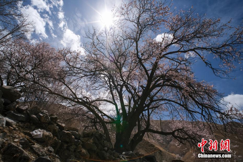 3月下旬,高原已是一片春意。西藏拉薩市區(qū)拉薩河南岸慈覺(jué)林的古桃樹(shù)進(jìn)入盛花期,3月30日恰逢周末,不少市民游客前往賞花“打卡”,在桃樹(shù)下野餐等,享受高原春日風(fēng)光。圖為3月30日,拉薩慈覺(jué)林的桃花。桃樹(shù)上是藏族民眾在藏歷新年時(shí)綁的經(jīng)幡。江飛波 攝