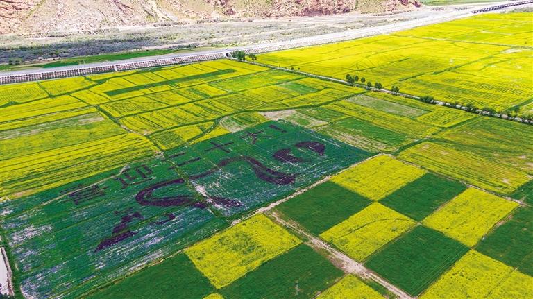 墨竹工卡縣農業(yè)農村局相關負責人告訴記者,這次的創(chuàng)意油菜花田和往年相比大不相同,為了迎接黨的二十大勝利召開,他們圈了400畝地人工種植了專門引進的四種彩色油菜花歷時兩個多月它們開花啦!看出這是什么圖案了嗎?現(xiàn)在記者給你揭曉(最上面是喜迎二十大字,字下中間是哈達、左邊是代表松贊干布和文成公主,右邊是愛心)。怎么樣,大家看出來了嗎?現(xiàn)在扎西崗村的創(chuàng)意油菜花都開了,從現(xiàn)在開始到接下來的半個月都是賞花期,一起去打卡墨竹工卡縣鄉(xiāng)村觀賞小油菜花的勝地吧,喜歡攝影的朋友更不能錯過哦?。▓D由洛克提供)